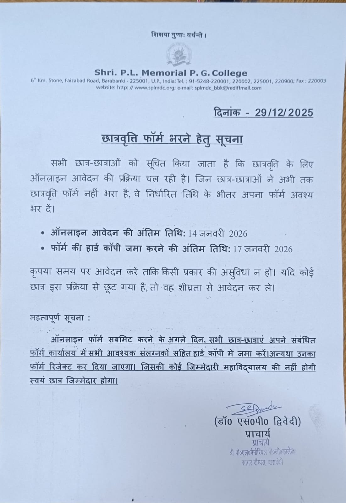 ? Important Notice for Scholarship Form Submission ? Last date for online application: 14 January 2026 ? Last date for submitting hard copy of the form: 17 January 2026