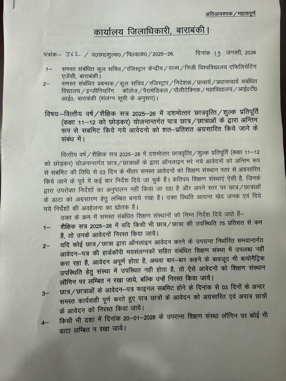 19-January-2026? Important Notice for Scholarship Form Submission ? Last date for online application: 14 January 2026 ? Last date for submitting hard copy of the form: 17 January 2026